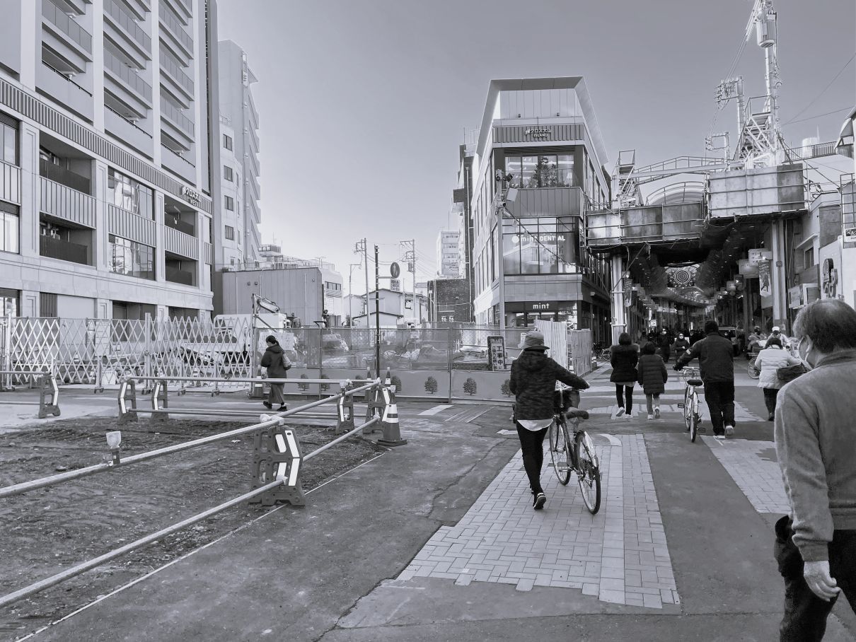 ハッピーロード大山商店街にある「コモディイイダ」というスーパーは、社長が最後まで闘うと、商店街を守れ、道路はいらない、と運動を繰り広げている「大山問題を考える会」とともに何回もデモ行進が取り組み、商店街には様々な反対のデコレーションが光っています。「大山問題を考える会」では、2025年度までに完成予定だった補助26号線が、また5年延長されたことに「仮設アーケードの設置」をよびかけ、商店街を、地域住民の憩いの場でもあるハッピーロード大山商店街を守りぬこうとがんばっています。