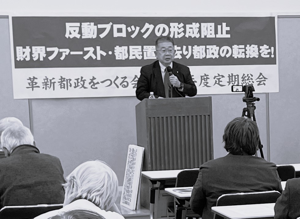 12月4日、革新都政をつくる会2025年度総会が開催されました。第1部ではつくる会顧問でもある小池晃日本共産党中央委員会書記局長が「政局報告」と題して、7月の参院選後の政局、とりわけ戦後最悪の高市自・維連立政権誕生のもとでの国会での動きについて報告。中山伸事務局長が2025年度の活動総括と2026年度の活動方針、決算・予算案、新役員体制について提案。満場一致で採択されました。