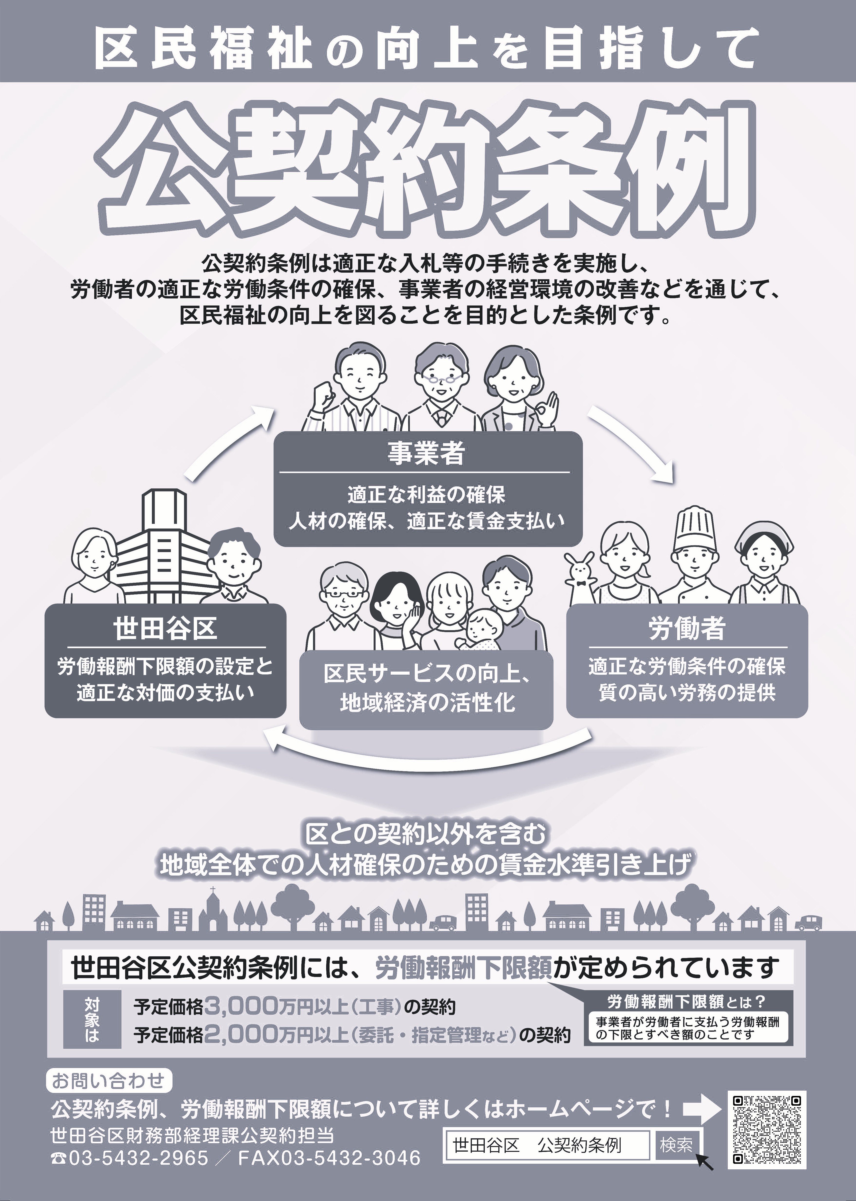 2014年に条例制定した世田谷区では、世田谷区職労や土建組合、地域の自治体問題研究所などが連携して「公契約推進世田谷懇談会」(2007年)を立ち上げ、こうした運動を背景に区議会に働きかけ、区の「公契約条例にかかわる あり方検討委員会」の設置をかちとり、条例を実現させました。