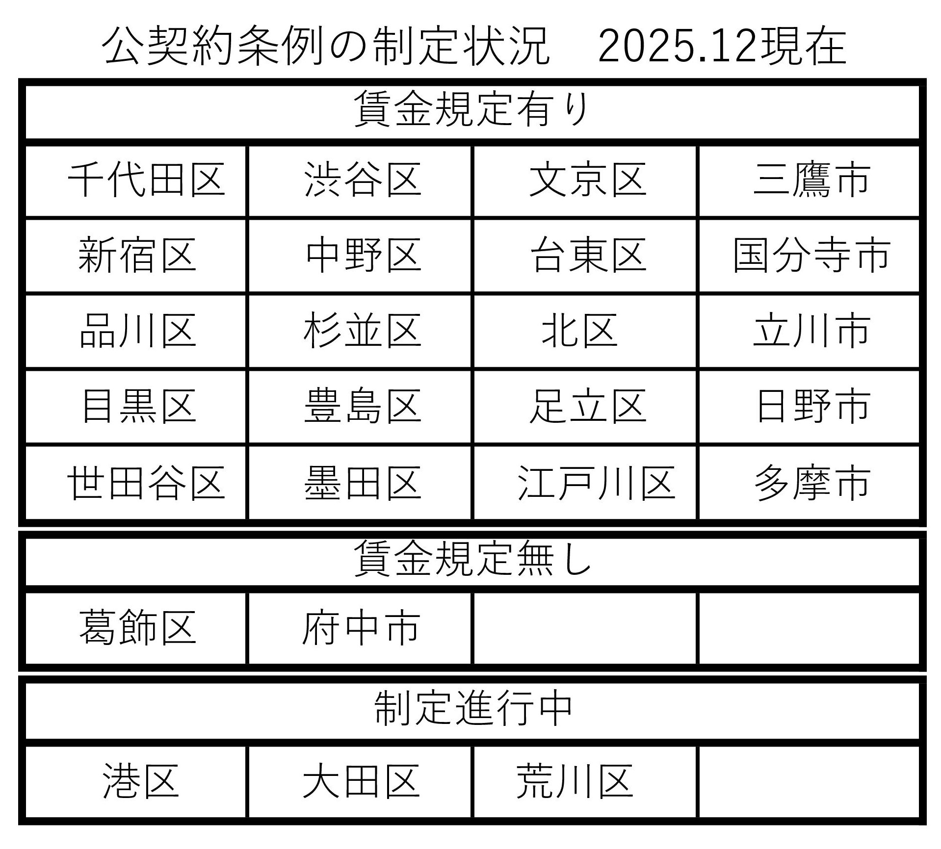 ひろがる都民のたたかい 公契約 条例 都民人口の過半数を超える自治体に広がる 地域からの要求と運動が切りひらく